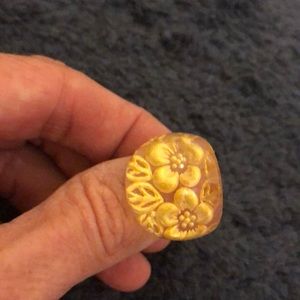 Clear see through ring with yellow flower detail. This is a dome ring and size isn’t exact. About a 6.75-7. Brand new.