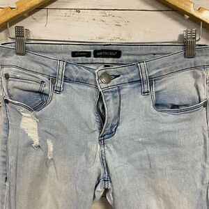 In good used condition Size 5 Light denim blue Distressed jeans Some frayed between crotch see last picture