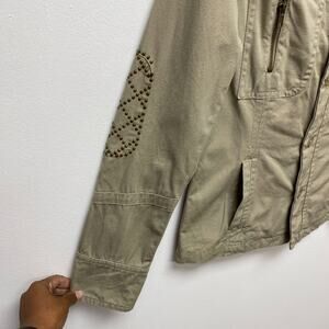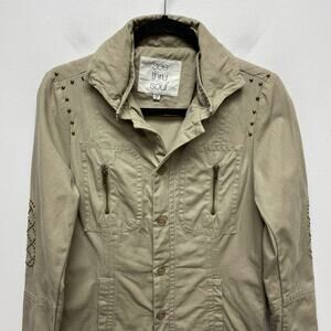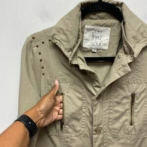 See Thru Soul Womens Green Studded Long Sleeve Button Front Military Jacket M