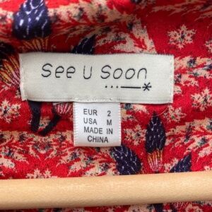 See U Soon Midi Floral Long Sleeve Dress Ruffle Collar Sleeves Size M