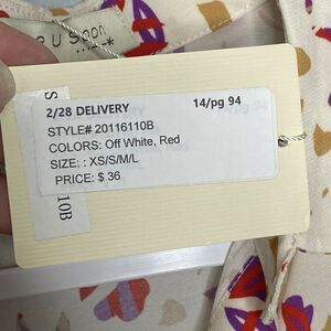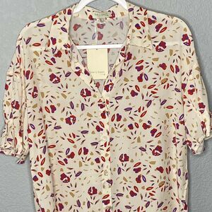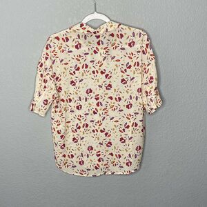 See U Soon Off White Ecru Print Button Down Short Sleeve Blouse Size Small