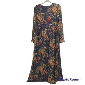 See U Soon navy blue all over floral long sleeve maxi dress size S NWT