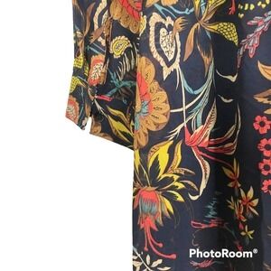 Brand new See U Soon floral maxi dress. Dark blue background will colorful floral print. V neckline with empire style fitted waist. Long sleeves with button wrist cuffs. Bottom side slits.