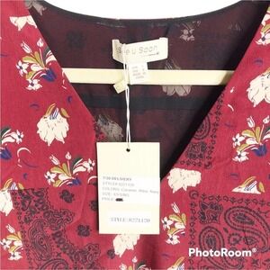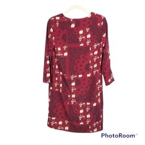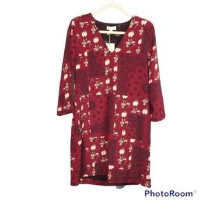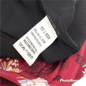Brand new See U Soon floral mini dress. All over red color with cream/white flowers and black paisley floral print. Shift dress design. Pull over styling. Long sleeves. V neckline