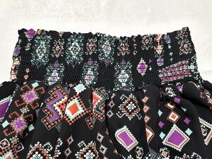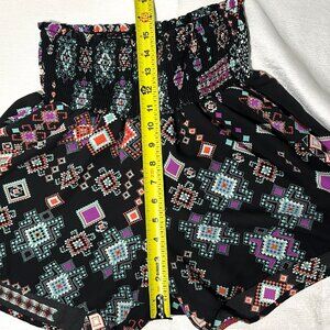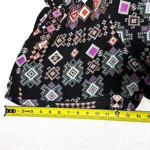 Chic high waist shorts with a bold geometric design. Features a black base with vibrant purple, teal, and orange accents. Perfect for casual wear. Lightweight comfortable shorts perfect for any occasion. Great condition. These are excellent for summer parties, vacations or parks since they’re both stylish and comfortable! Both layers are super light so they don't make you hotter in warm weather.