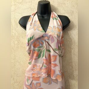 Halter neck Top sheer overlay with lining at the top