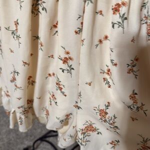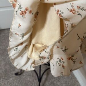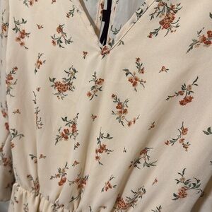 Flowy sleeved romper with floral accents. Soft cream fabric. Ideal for everyday wear.
