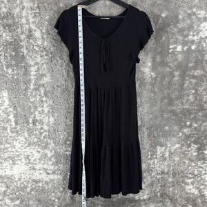 See You Monday Size M V Neck Fit Flared Mini Dress Black Short Sleeve