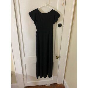 See You Monday Women's Black Flutter Sleeve Open Front Maxi Dress - Medium