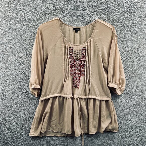 See You Monday Womens Boho Blouse Large Taupe Embroidered Peplum Festival Ethnic
