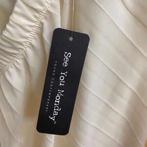 See You Monday cream colored skirt, new with tag, XL. 14 inches at elastic waist. Elastic stretched to approximately 20 inches.