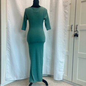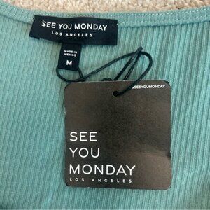 See You Monday dusty mint green ribbed front tie midi dress Sz M NWT