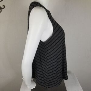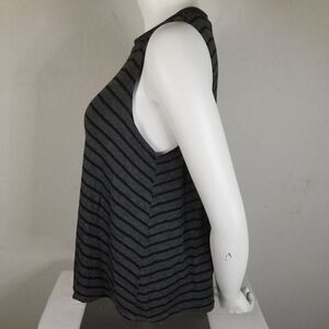 Cute sleeveless gray top with black stripes! Perfect top for a fun day out on the town!