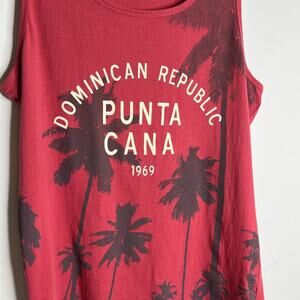 See You Sun Women's Tank Top Size L Red Punta Cana Graphic Palm Tree 100% Cotton