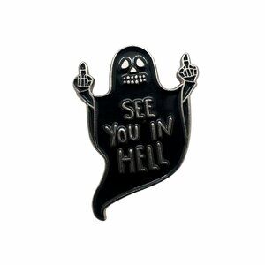 See You In Hell Enamel Brooch Pin Middle Finger Ghost Halloween Horror Goth Pins Buttons Badges