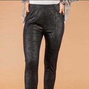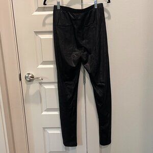 See and Be Seen Leggings. Thin, black, pebbled faux leather print. Pull on elastic waistband. Stretch in material. Size M. NWOT. Waist measures 14 inches not stretched. Inseam 28 inches.