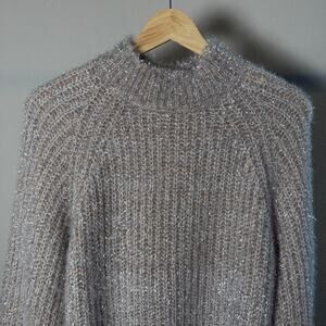 See and Be Seen Women's Silver Metallic and Tan Eyelash Sweater Size S