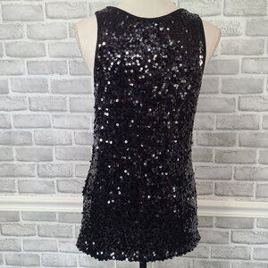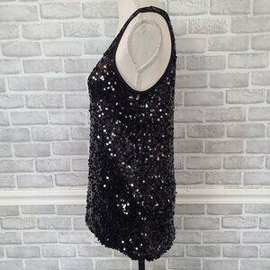 See by CHLOE Black Sequin Sleeveless Shift Tank Dress 8 Glam Party LBD Dance
