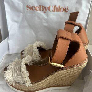 See by Chloé Espadrille Wedge Sandals-Natural SIZE 6
