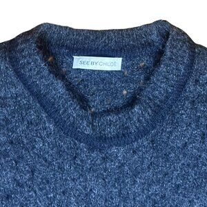 Elevated, cozy, and effortlessly chic — this See by Chloé luxury knit sweater is made from a high-end mohair & wool blend that feels as good as it looks. The rich blue tone, soft fuzzy texture, and refined knit details give this piece serious French girl / quiet luxury energy. Perfect for fall into winter layering, office chic, or elevated casual looks. This is one of those sweaters that looks expensive because it is.