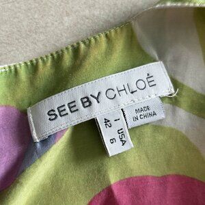 See by Chloé "Daisy Tank" as seen on Alex Russo (Selena Gomez) in Wizards of Waverly Place: The Movie (2009) and on Selena when visiting Radio Disney in 2009. 55% silk, 44% cotton. Hand wash.