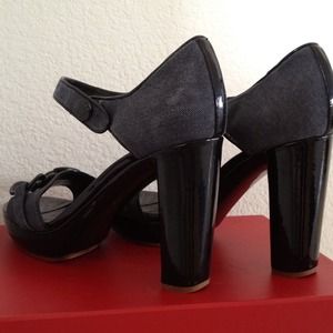Denim like fabric. Mary Jane Sandal pumps. Worn but in very good condition.