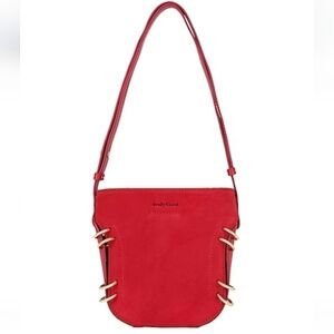 NWT 100% Bovine Leather, stunning red with goldtone hardware, medium, suede effect,