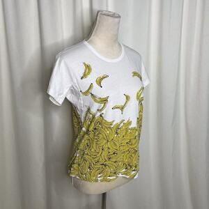 See by Chloe Banana Graphic Print T-Shirt White Yellow Women's 6 Vintage Y2K