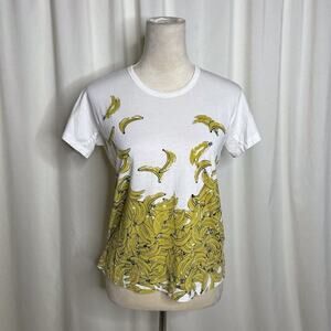 See by Chloe Banana Graphic Print T-Shirt White Yellow Women's 6 Vintage Y2K