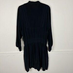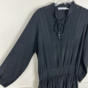 See by Chloe Black Silk Smocked Sheer Panel Peasant Dress M