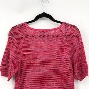 See by Chloe Blouse Rib Knit Openwork Scoop Neck Short Sleeve Curve Hem Pink 8