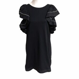 See by Chloe Cascading Ruffle Sleeve Dress SZ S Black