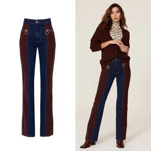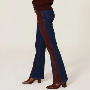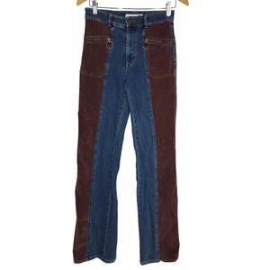 See by Chloe Denim Corduroy Bootcut Jeans 70s Flared Hem Colorblock Blue & Brown 28