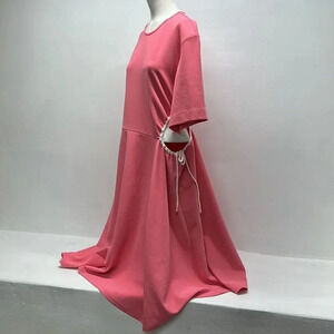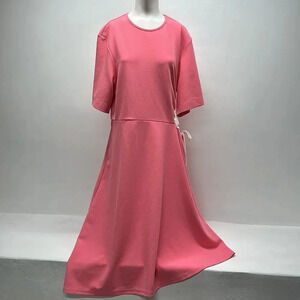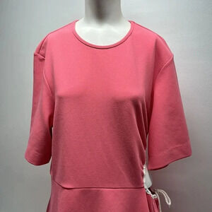See by Chloe Dress Midi Crepe Sharkbite Cut Short Sleeve Dazzling Pink Size XL