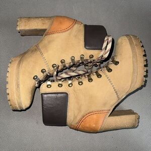 See by Chloe Eileen Tan Lace Up Block Heel Logger Style Boots Shoes Size 38 US 8