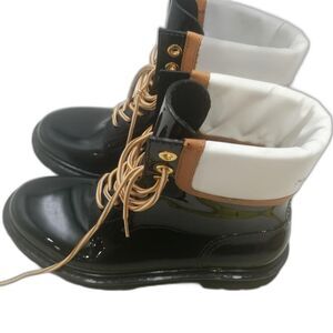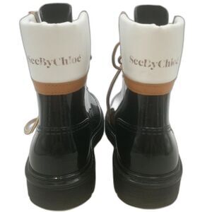 Look forward to rainy days when wearing these stylish See by Chloe Florrie rain boots. They are in excellent used condition with just a bit of fading on the logo on the back of the boots.