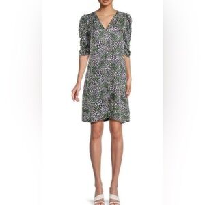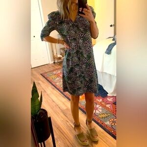 Dress Floral-print Satin-twill Gathered sleeves Slips on Non-stretchy fabric Mid-weight fabric Dry clean Imported