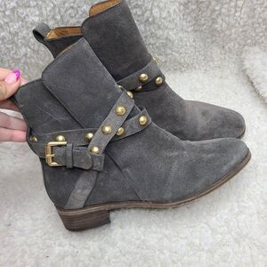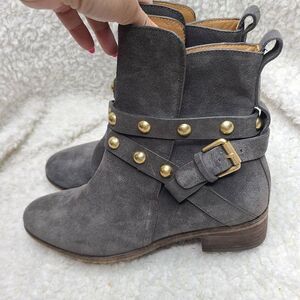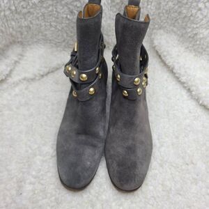 See by Chloe Gray Suede Studded Harness Ankle Boots sz 38