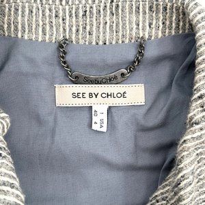 See by Chloe Gray White Striped Metallic Peter Pan Collar Textured Light Jacket