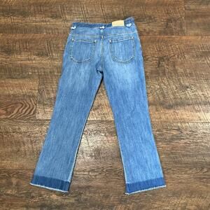 See by Chloe Jeans Italy Button Fly Medium Wash Blue Denim Raw Hem Crop Size 26