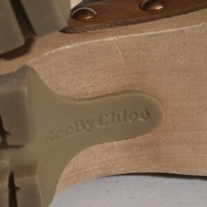 See by Chloe Joline Buckle Espadrille Brown Leather Studded Clog Sandals Size 38