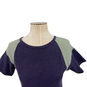 See by Chloe Knit Top Short Sleeve Contract Back Purple Lime Green Size US 4