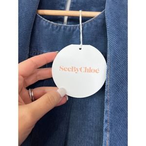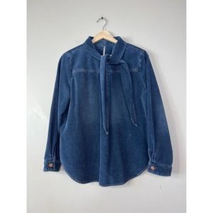 See by Chloe Knotted Tie Codruroy Blouse Top Women's Dusky Blue Size: Large NWT
