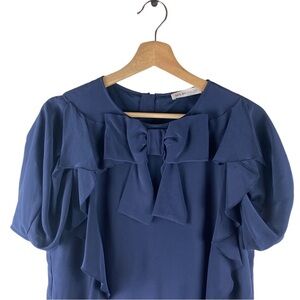 See by Chloe Navy Silk Bow Detail Ruffle Dress Size 10