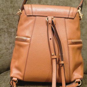 Very good condition and rare brown leather backpack. Extra versatile because it's convertible! Wear as a backpack, by top handle or long strap.