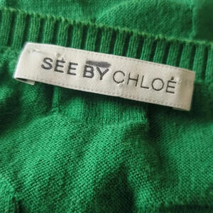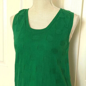 Front pockets towards the bottoms hem. Polkadot design. Knit. Slip over the head entry. Cotton