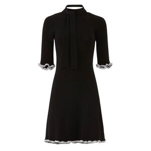 Frilly lettuce trim and a ladylike neck tie exude modern charm on this festive little dress from See by Chloe.