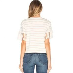 See by Chloe Short Sleeve Fringe Top Cream Stripe Tassels Size Large