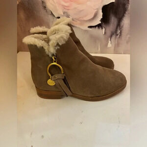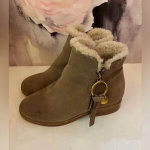 See by Chloe Womens Louise Taupe Leather Zip-On Ankle Boots Shoes