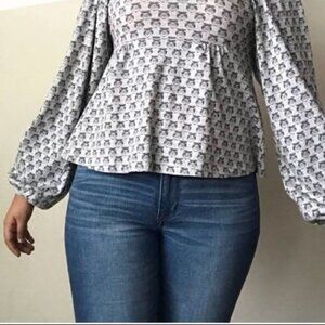 See by Chloe gray owl peplum long sleeves cotton top size 6